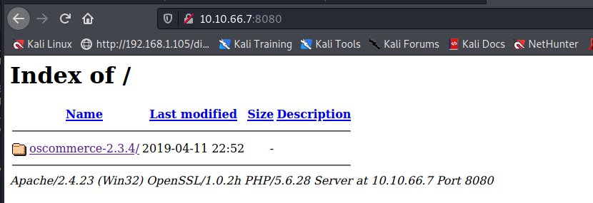 8080/tcp open http Apache httpd 2.4.23 (OpenSSL/1.0.2h PHP/5.6.28)