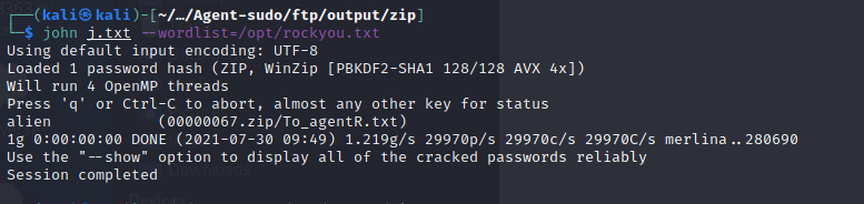 zip2john 00000067.zip > j.txtjohn j.txt --wordlist=/opt/rockyou.txt- 就可以取得密碼為