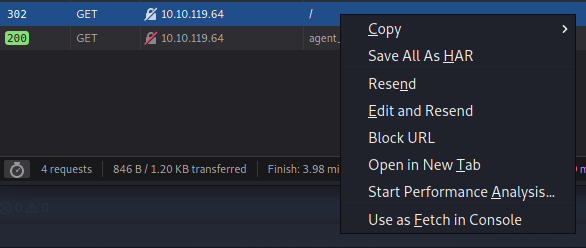 - 修改 User-Agent為 C 並送出可以發現他自動跳轉到這個網頁- http://10.10.119.64/agent_C_attention.php