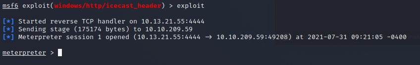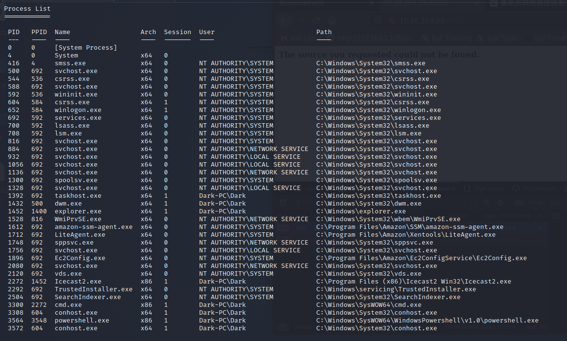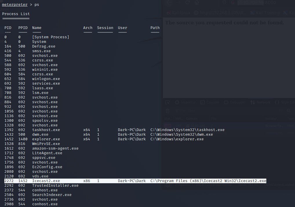 meterpreter的 shellWhat user was running that Icecast process? The commands used in this question and the next few are taken directly from the ‘RP: Metasploit’ room.- 輸入ps可以看到所有的 process