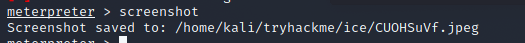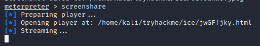 - 可以發現也是可以快速爆出密碼While more useful when interacting with a machine being used, what command allows us to watch the remote user’s desktop in real time?- 這題剛開始我以為是說螢幕截圖