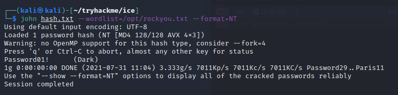 john hash.txt --wordlist=/opt/rockyou.txt --format=NT