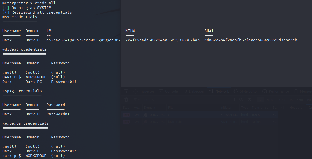 Run this command now. What is Dark’s password? Mimikatz allows us to steal this password out of memory even without the user ‘Dark’ logged in as there is a scheduled task that runs the Icecast as the user ‘Dark’. It also helps that Windows Defender isn’t running on the box ;) (Take a look again at the ps list, this box isn’t in the best shape with both the firewall and defender disabled)- 上面就有寫到 Dark的密碼為Password01!
