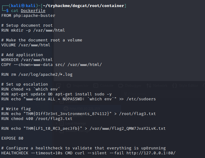 下載並觀察備份檔案- wget http://10.10.221.153/backup.tar tar xf backup.tar觀察 Docker File-