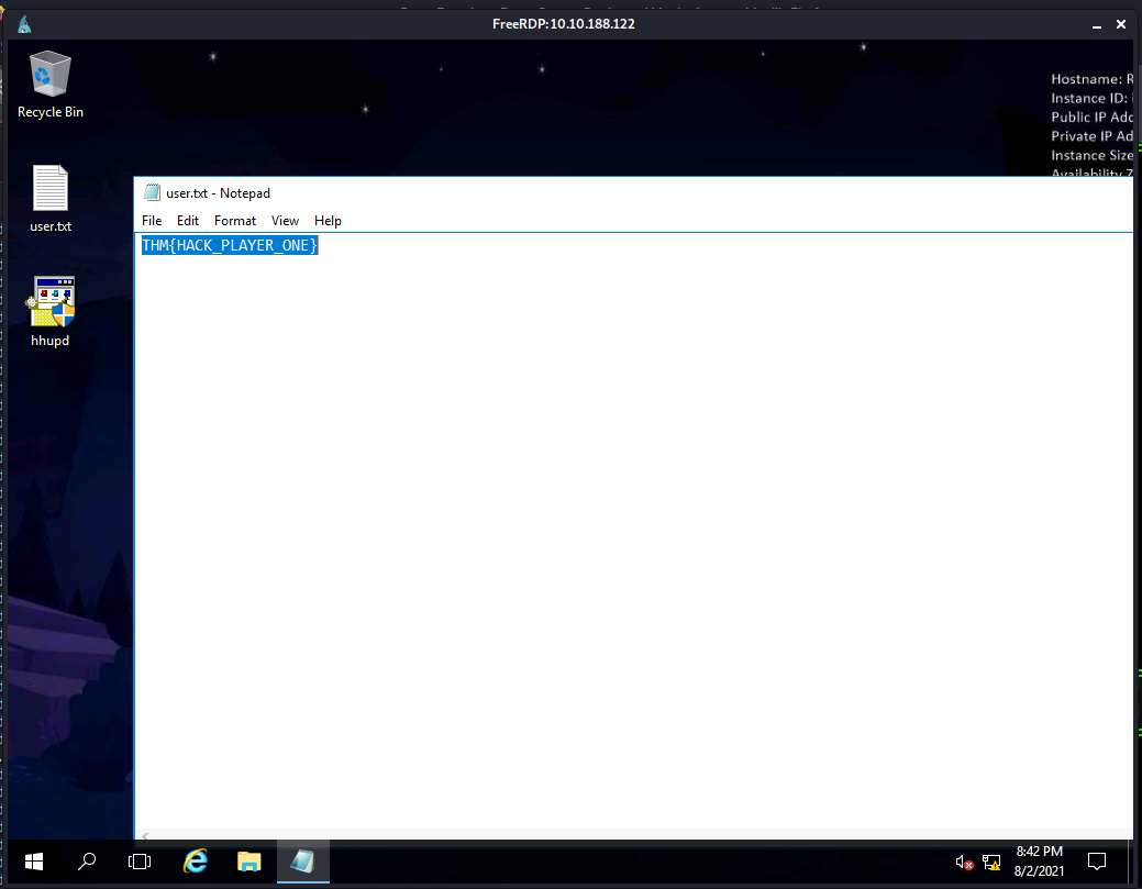 取得 user flag- THM{HACK_PLAYER_ONE}
