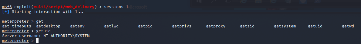 輸入 sessions 1- 可以切換到 sessions 1 的 meterpreter shell
