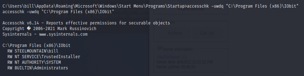 accesschk -uwdq "C:\Program Files (x86)\IoBit-