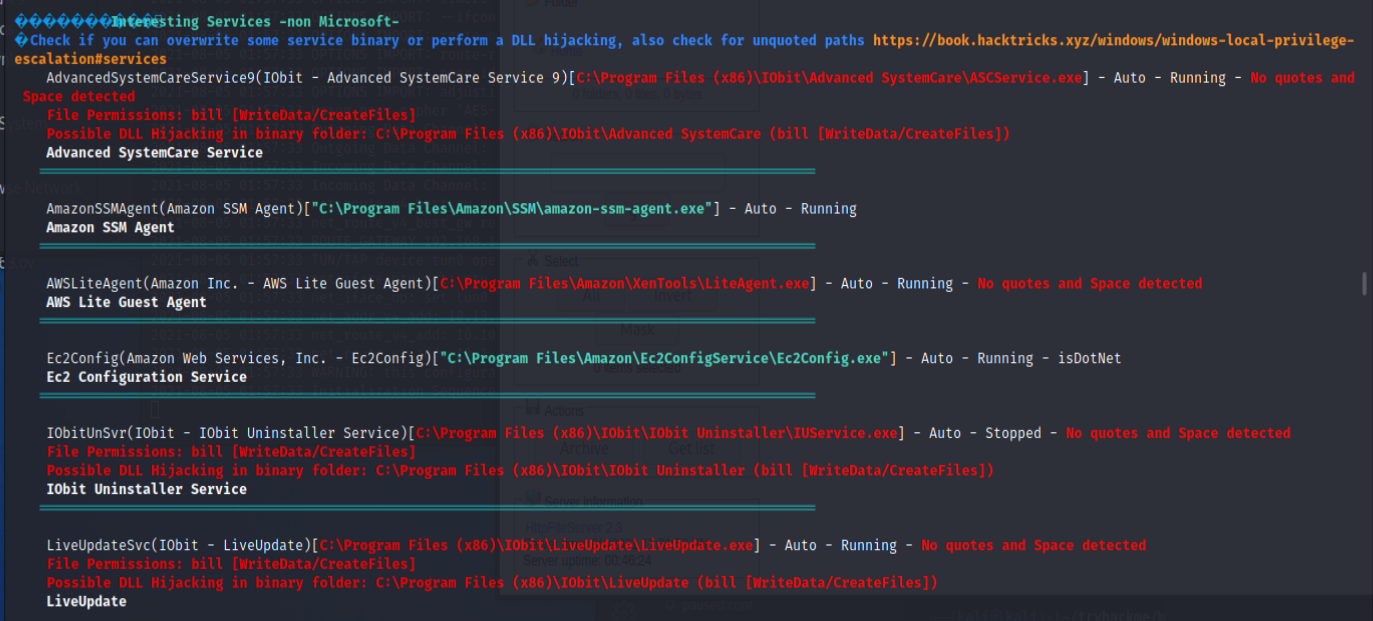 觀察 Services- 可以輸入 powershell -c Get-Service觀察目前的所有 Services- WinPeas 也已經很好心的告訴我們是