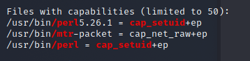 cap_setuid - 去 GTFObins 上找就找到了 GTFObins 上面的 perl Capabilities-