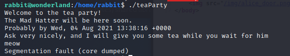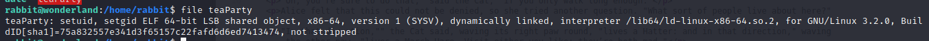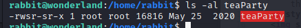 透過 ls -al teaParty會發現他有 SUID-