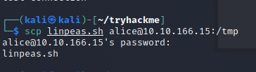 - 先透過 scp 把 linpeas 給傳到機器中