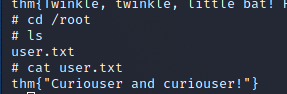 user.txt``thm{"Curiouser and curiouser!"} 把user.txt放在root目錄是不是搞錯了什麼