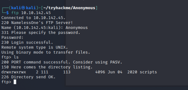 嘗試連接 ftp- ftp 10.10.142.45使用 anonymous 登入