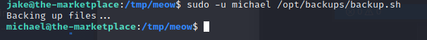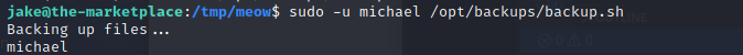 用 賣口權限執行- sudo -u michael /opt/backups/backup.sh - 發現可以成功!!!