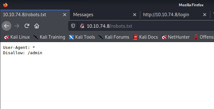 python3 dirsearch.py -u http://10.10.74.8/``robots.txt loginsignup