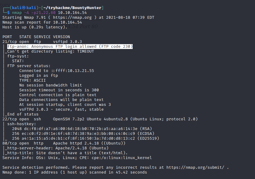 nmap -A -p21,22,80 10.10.164.54-