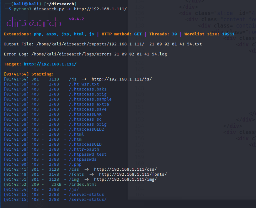 掃 Dir- python3 dirsearch.py -u http://192.168.1.111/