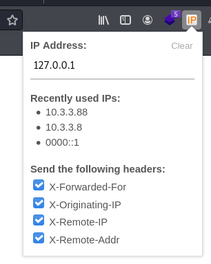X-Forwarded-For的 Header 來進行達成詳見 : https://devco.re/blog/2014/06/19/client-ip-detection/ - 通常大多數人會使用 BurpSuite 進行修改,不過我個人推薦使用更懶人的 Firefox Plugin