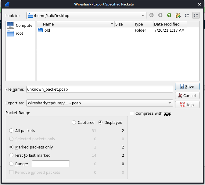 並選擇只儲存剛剛 Mark 的封包 (Marked packets only)