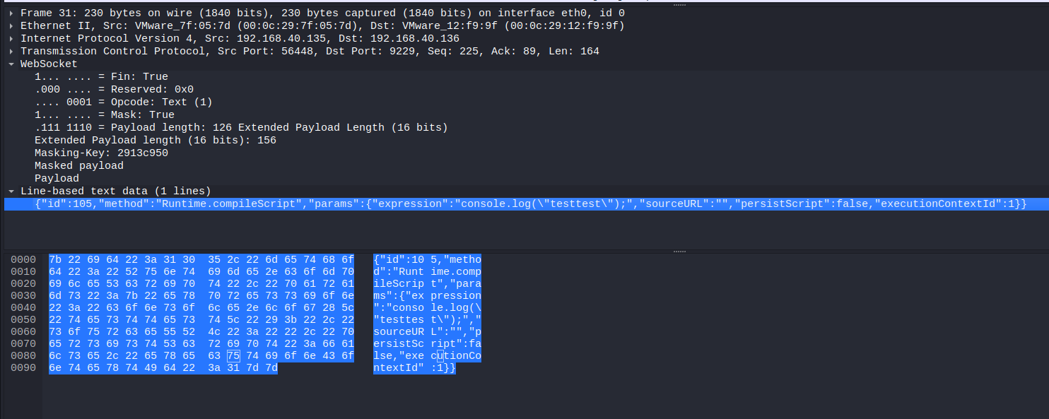 用 Wireshark 觀察封包,把 Protocol 設定成 WebSocket 後,可以看出它的 Payload 會經過 Masked,但基本上可以看出他們在幹嘛。