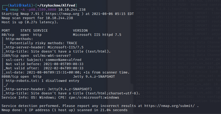 nmap -A -p80,3389,8080 10.10.244.238-