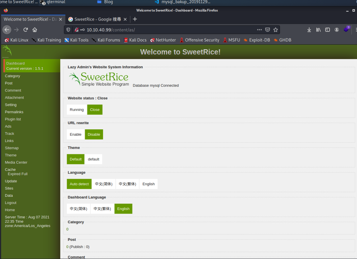 - Sweet Rice CMS 的後台是