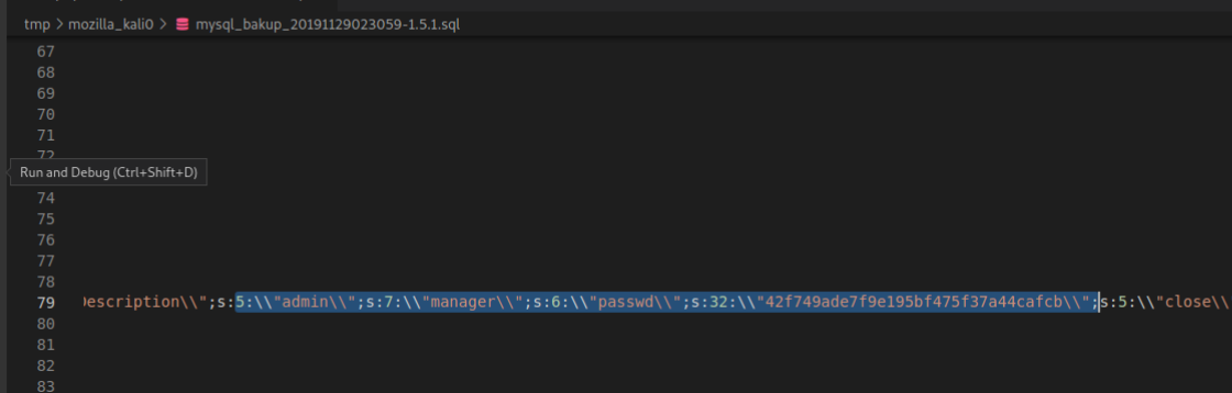 5:\\"admin\\";s:7:\\"manager\\";s:6:\\"passwd\\";s:32:\\"42f749ade7f9e195bf475f37a44cafcb\\";