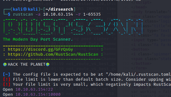 rustscan -a 10.10.63.154 -r 1-65535
