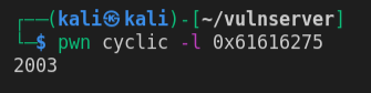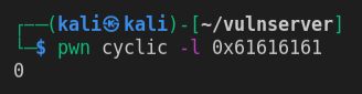 pwn cyclic -l {Pattern in hex}- 隨便取 4 個值,都能知道他 offset 第幾格