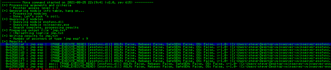 jmp ESP 即可在 immunity debugger 下面輸入- !mona jmp -r esp 可以找到 jmp ESP 的指令