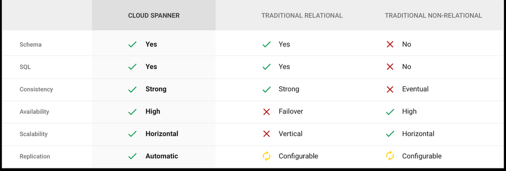 Spanner 與 RDBMS / N-RDBMS 比較
