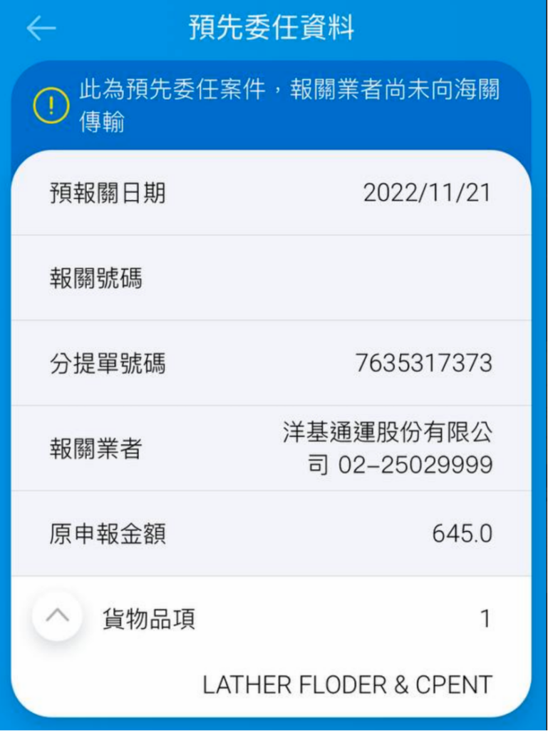 這封信寄出後,就繼續的無聲卡了快要一個月,終於,到了 11 月 21 日,我收到了EZWay海關申報單,跟我說我有一個貨物需要申報。申報品項寫的是 LATHER FLODER & CPENT,摁……反正都是 EC Council 寄來的,應該沒錯了吧?