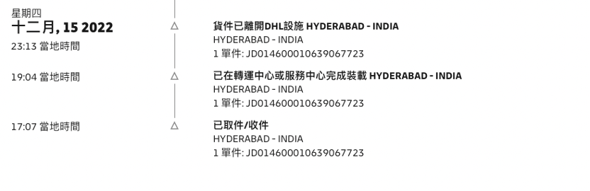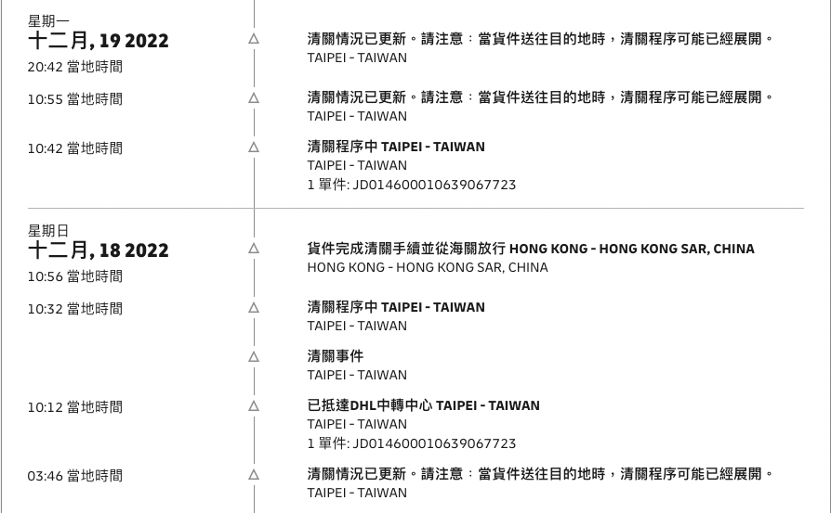 到了 19 日晚上,我看到 DHL 的狀態更新了