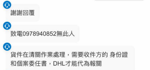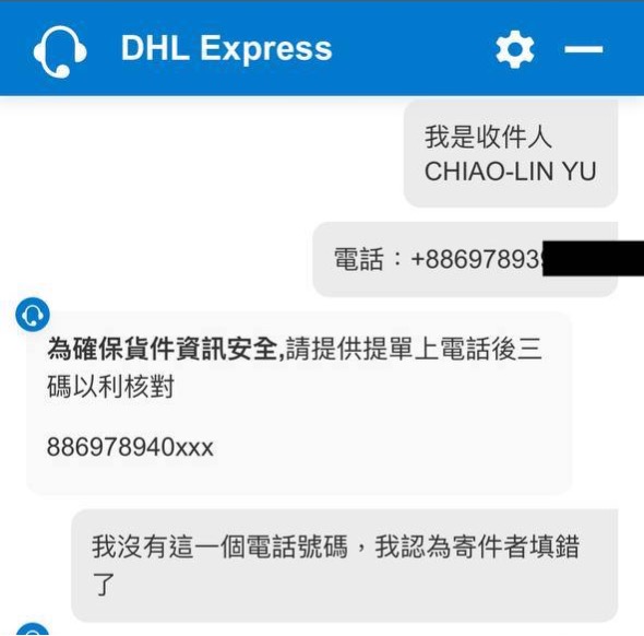 DHL 透過其他方式跟我確認身份,證明包裹真的是我的後,告訴了我包裹上填寫的電話號碼。