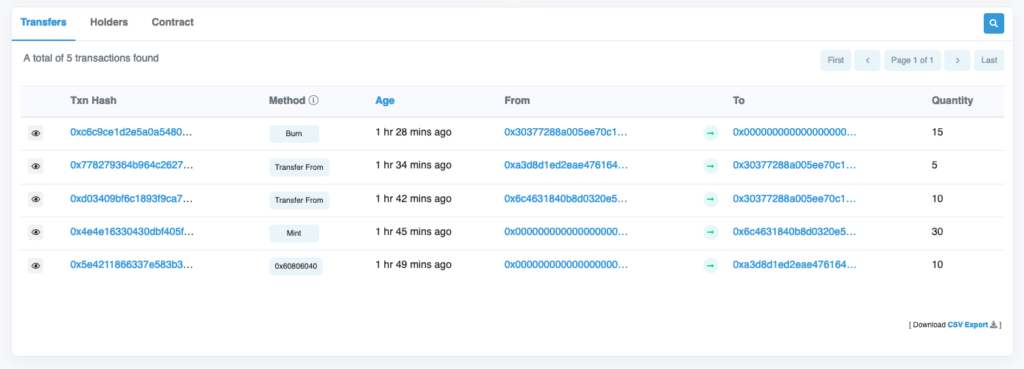 Tx 0x4e4e1633 這個 Transaction 透過 A 進行 Mint 鑄造了 30 顆新的 BDC 給 B 帳號。